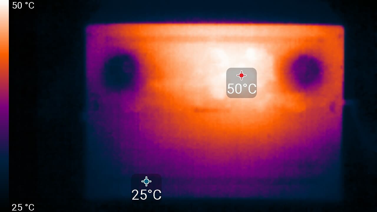 На рабочей поверхности за клавиатурой и на днище корпуса расположены вентиляционные отверстия в виде стилизованной сотовой структуры с довольно большой площадью. Через них кулеры всасывают холодный воздух, а выдувают нагретый — назад и направо/налево.