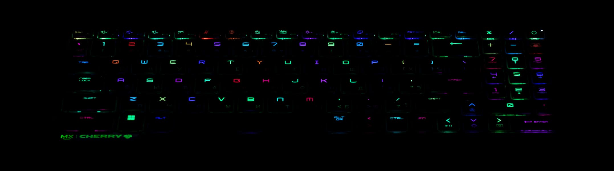 Клавиатура снабжена динамической подсветкой per key RGB, в том числе, с переходами и переливами цветов.