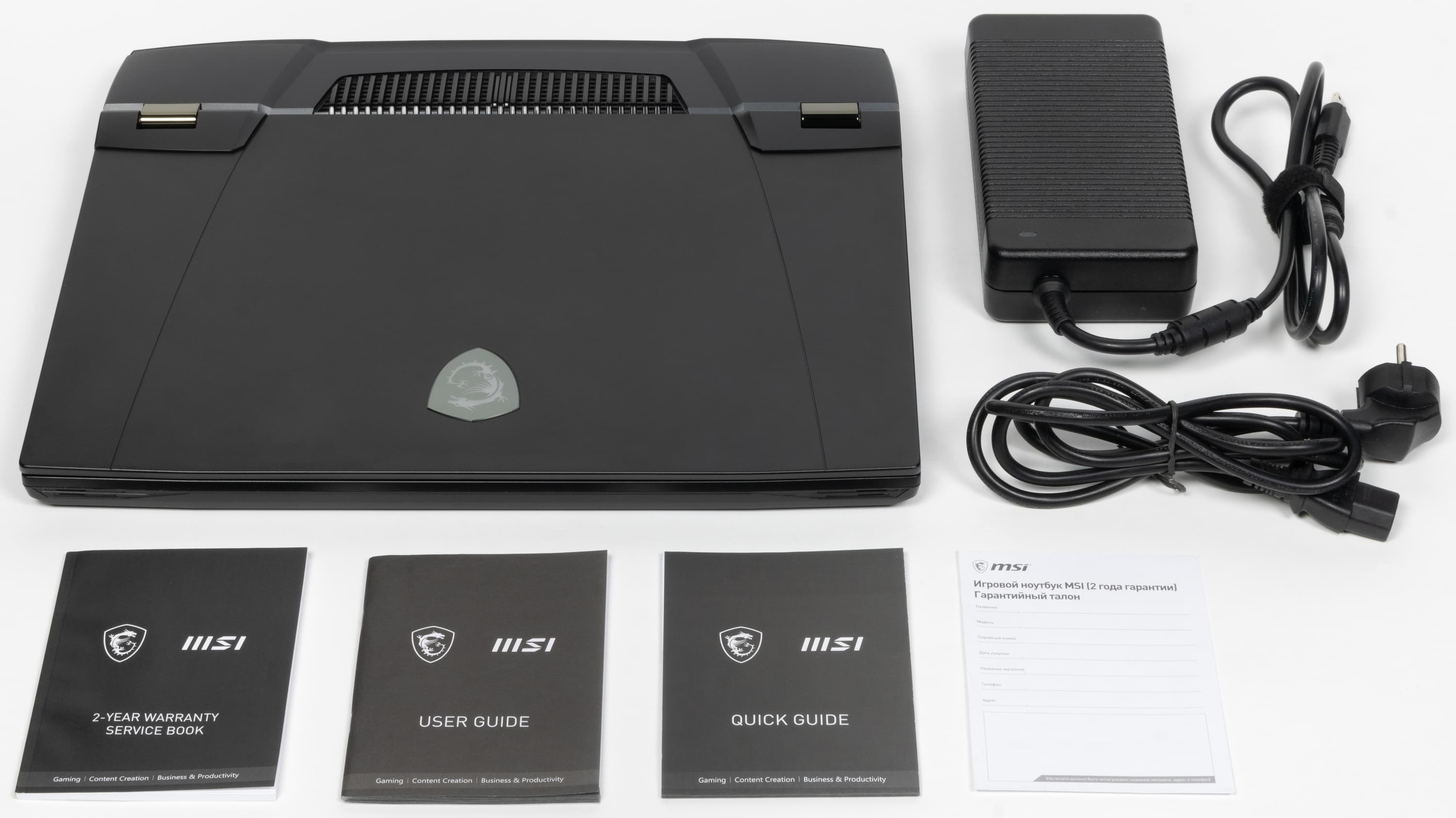 В комплекте поставки помимо самого ноутбука имеются адаптер питания (подробности ниже), руководство пользователя, инструкция по быстрой установке, сервисная книжка и гарантийный талон.