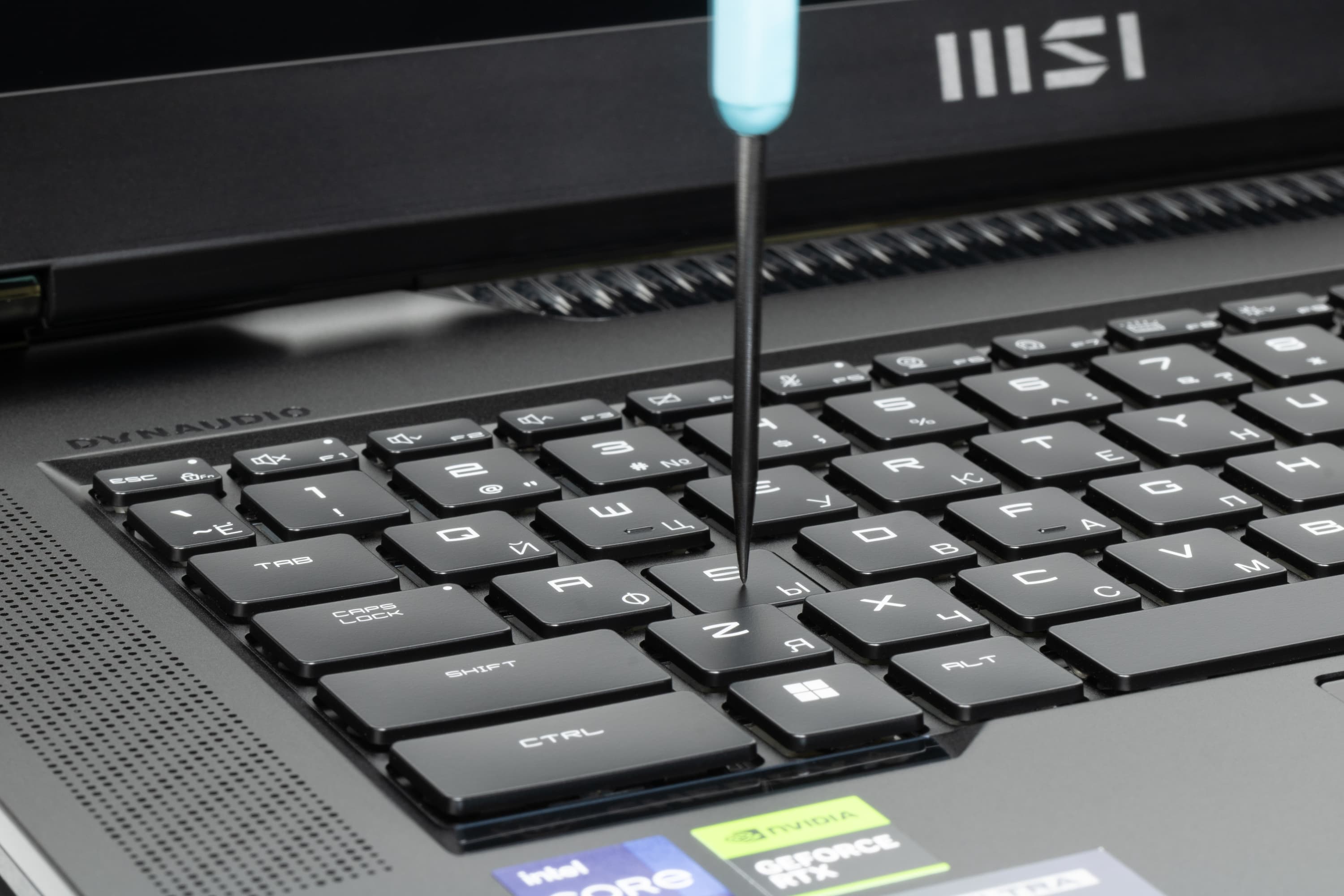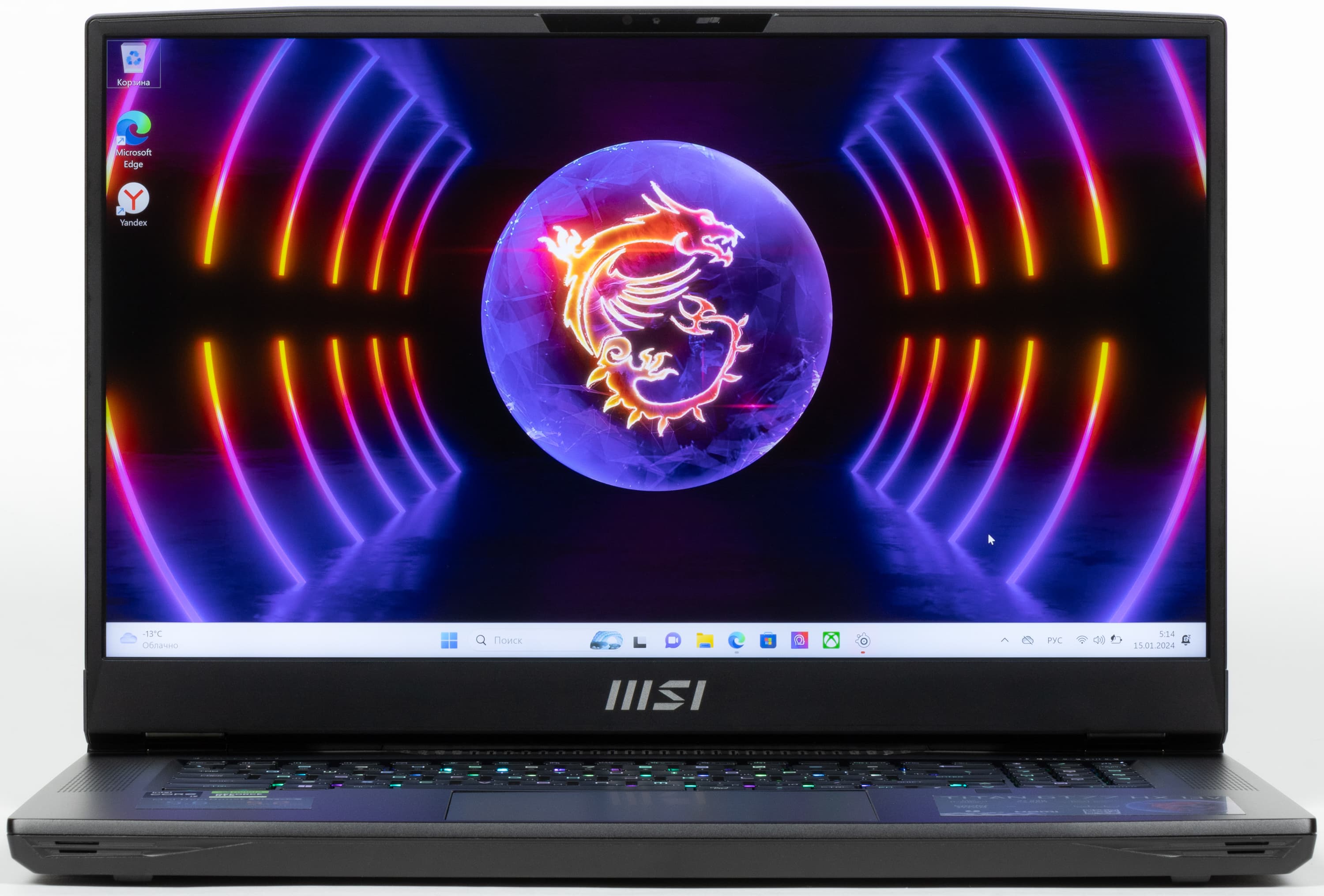 Несъемная аппаратная начинка игрового флагмана MSI не вызывает ни вопросов, ни нареканий. Это касается топовых процессора Intel Core i9-13980HX (с разблокированным множителем) и видеокарты Nvidia GeForce RTX 4090 с 16 ГБ GDDR6, сложной и высокоэффективной четырехвентиляторной системы охлаждения, конструктивно оформленной в виде отдельного отсека, отличной механической клавиатуры с низкопрофильными переключателями клавиш и великолепного IPS-экрана с разрешением 4K и подсветкой Mini-LED. На системной плате не два, как это принято, а целых три слота M.2, то есть помимо уже присутствующего системного накопителя можно установить еще два дополнительных. Слотов для оперативной памяти тоже не два — их четыре, и занята только одна пара. Максимальный объем ОЗУ при установке во все слоты 32-гигабайтных модулей составит 128 ГБ. А еще три порта USB 3.2 Gen2 — это уже небывальщина, — да плюс два порта Thunderbolt 4, которые вкупе с HDMI и Mini-DisplayPort позволяют подключить сразу четыре внешних монитора.