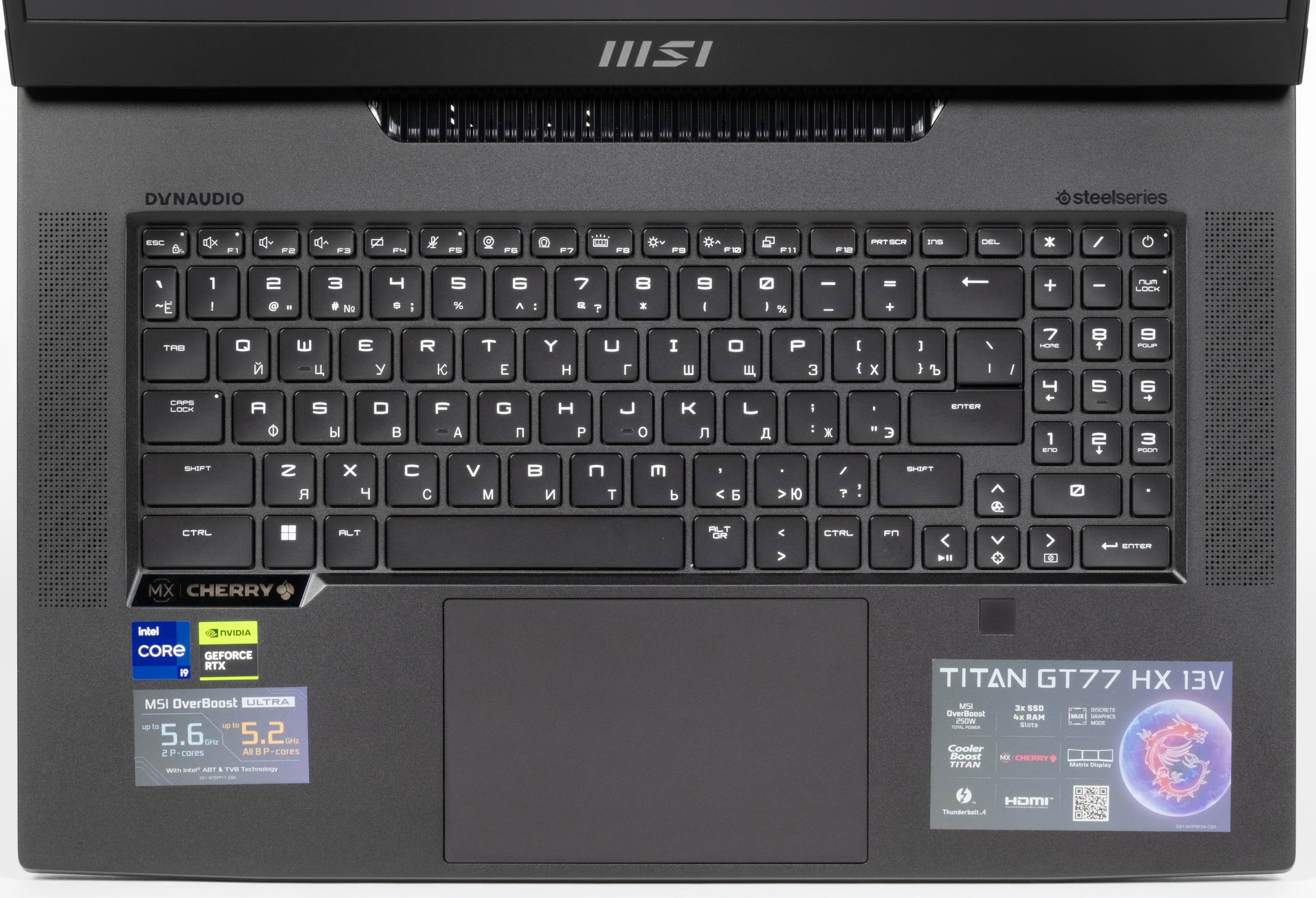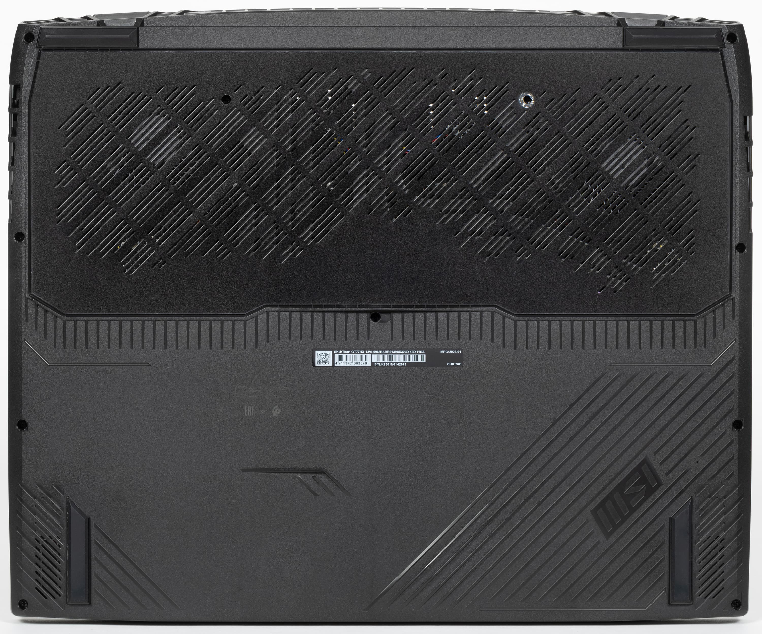 Особым признаком компоновки MSI Titan GT77 HX 13VI (как и предшествующей модели) является задняя часть корпуса, на которой сверху и снизу расположены входные, а справа, слева и сзади — выходные решетки системы охлаждения. Для обособления этой зоны был специально увеличен продольный размер корпуса, а крышка вместе с петлями отодвинута ближе к переднему краю машины, благодаря чему экран не нагревается «выхлопом» кулеров.