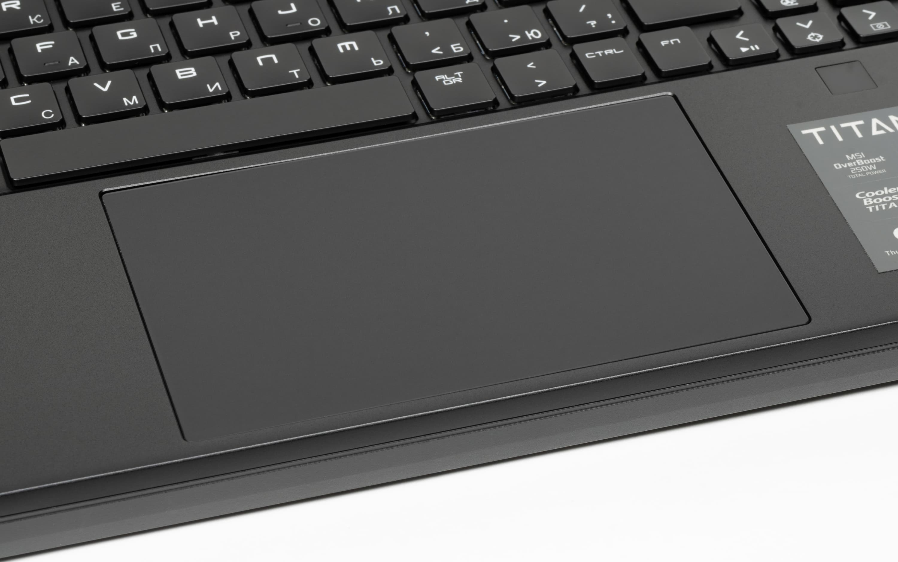 Навигационная панель не имеет выделенных кнопок, но нажатия сопровождаются отчетливыми щелчками и соответствующими откликами. Она располагается точно посередине ближней части клавиатурной панели. Кликпад не слишком большой, но весьма удобный в пользовании. Уверенно отрабатываются нажатия в ближайших к пользователю ⅔ площади.