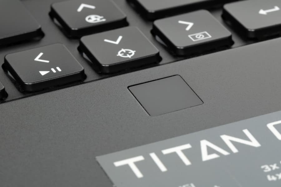 Ноутбук оснащен дактилоскопическим сканером, который размещен как отдельный элемент под блоком «стрелок».