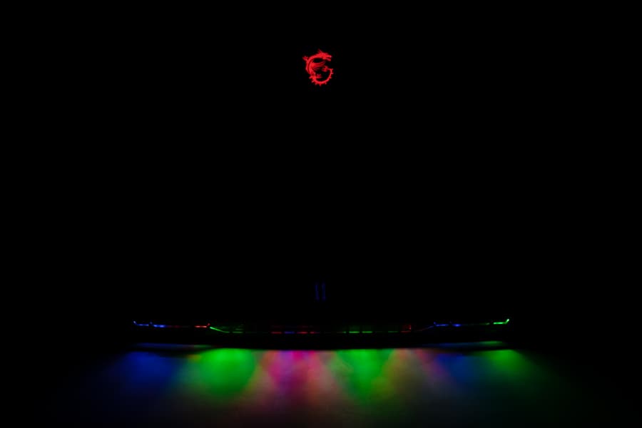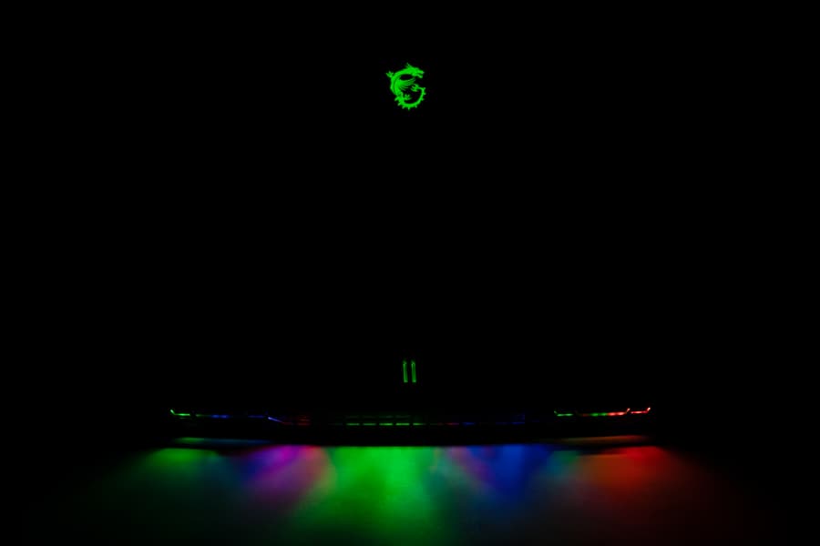 На крышке красуется привычный логотип игровой серии MSI в виде дракона. В рабочем состоянии он подсвечивается сообразно выбранной цветовой схеме.