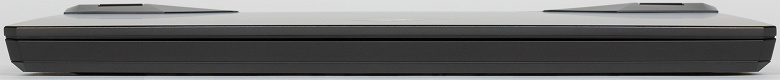 Петли за счет поднимающихся над поверхностью накладок массивные, но оценить их прочность сложно. Максимальный угол откидывания крышки составляет примерно 118°. В закрытом состоянии она удерживается без замков или магнитов, только за счет петель и доводчика, но держится при этом хорошо, поскольку усилие, необходимое для раскрытия, подобрано правильно. Петли довольно тугие, но ноутбук легко открывается одной рукой, но при этом крышка не болтается, а корпус не подпрыгивает на столе. Закрыть машину одной рукой удается не всегда: если она лежит на глянцевой поверхности, то начинает скользить по ней сообразно вектору приложения усилия. Днище имеет сложный рельеф поверхности, что отвечает потребностям системы охлаждения.