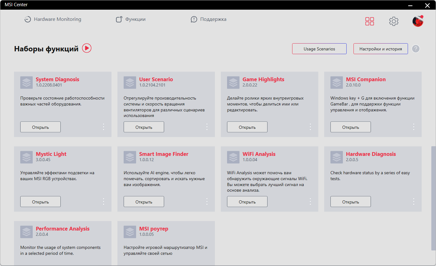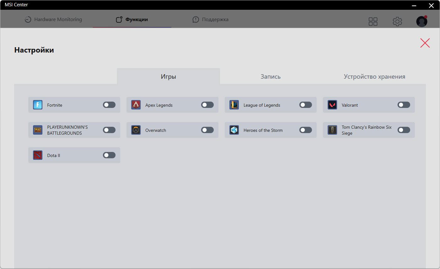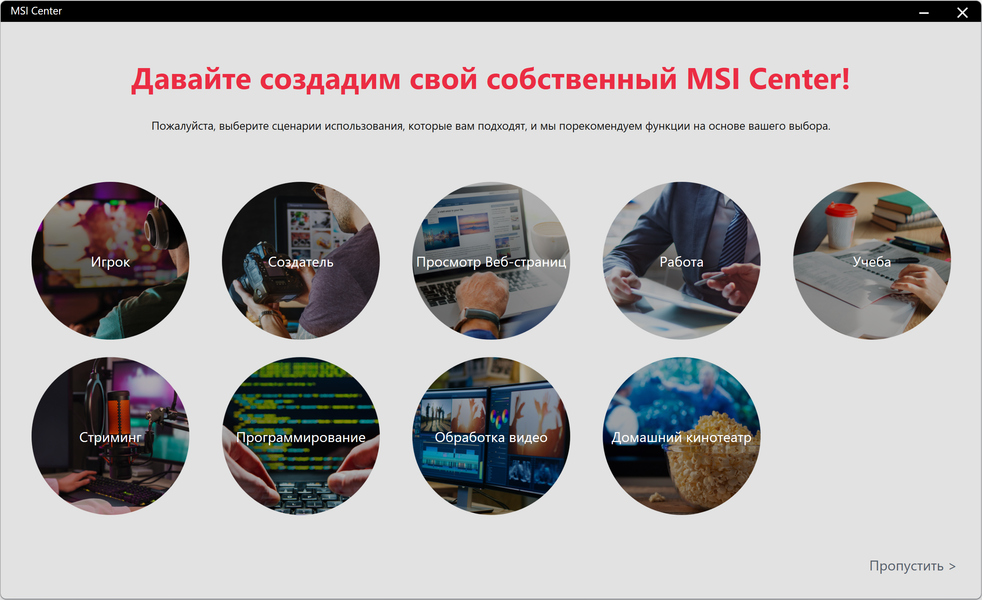MSI Center дает возможность установить только те компоненты, которые потребуются пользователю, сэкономив место на накопителе.
