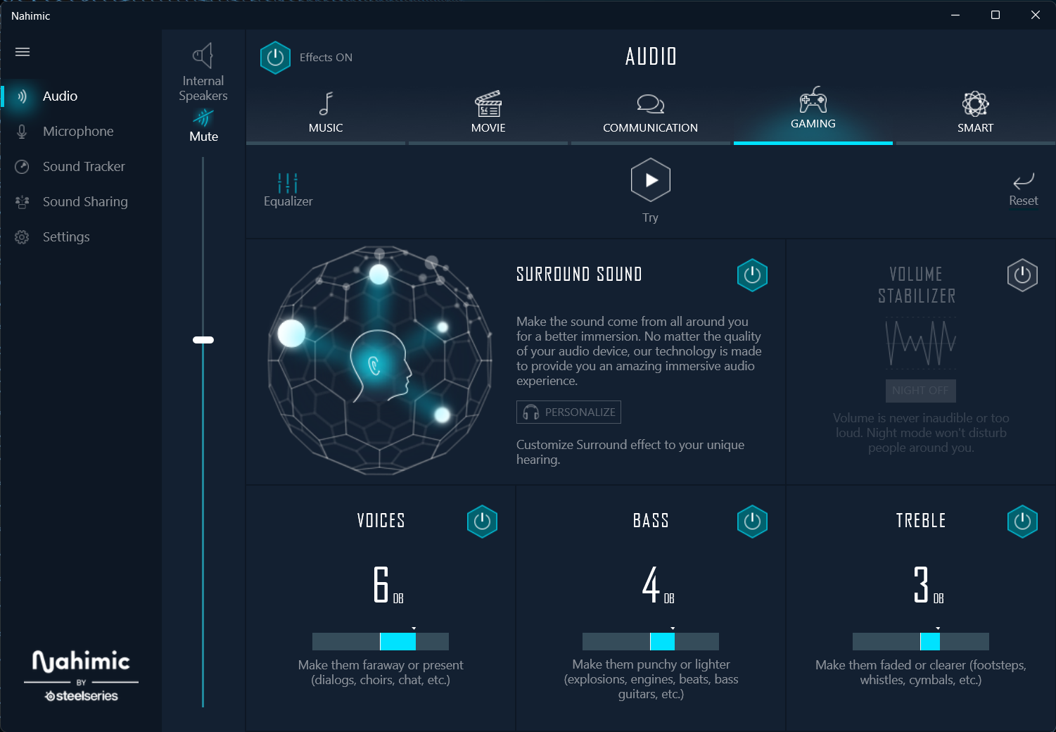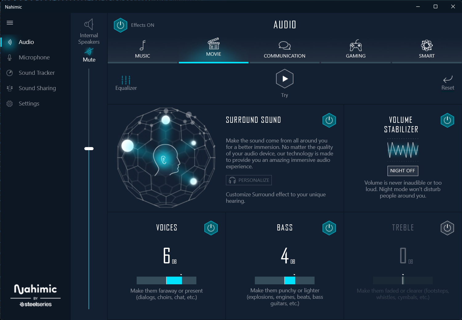 Производитель активно продвигает возможности аудионастроек при помощи утилиты Nahimic.