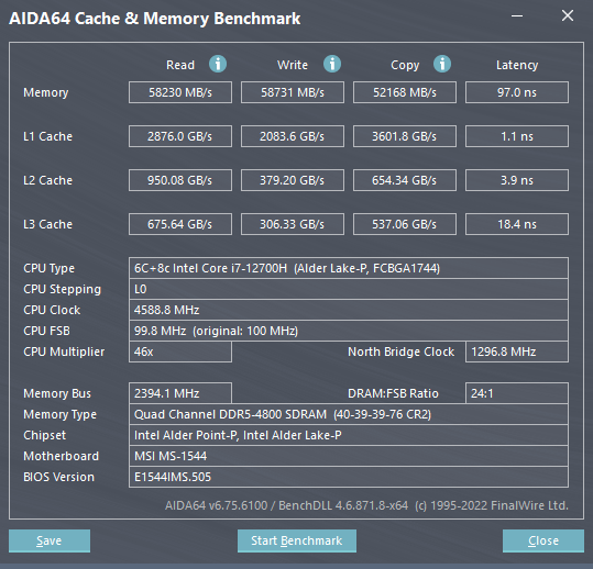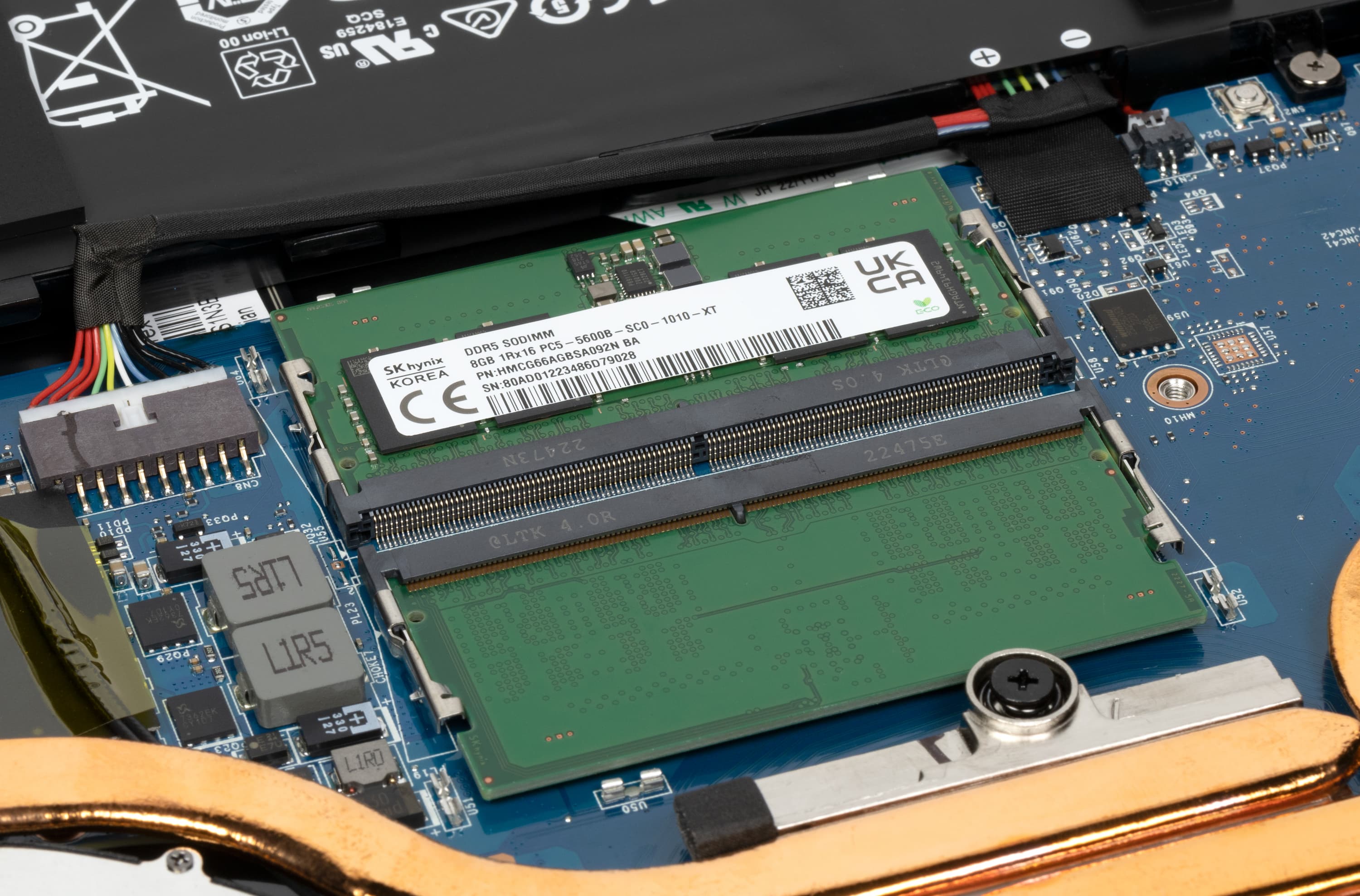 MSI Vector GP77 13V располагает 16 ГБ оперативной памяти. представленной двумя равноценными модулями по 8 ГБ (SK Hynix SO-DIMM DDR5-5600).