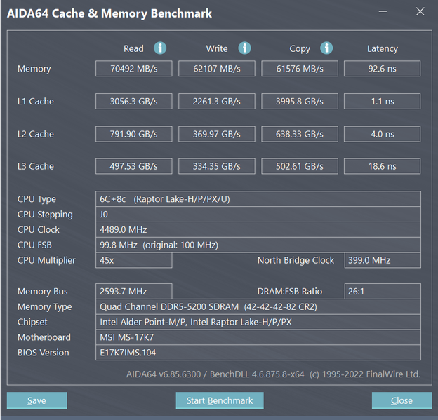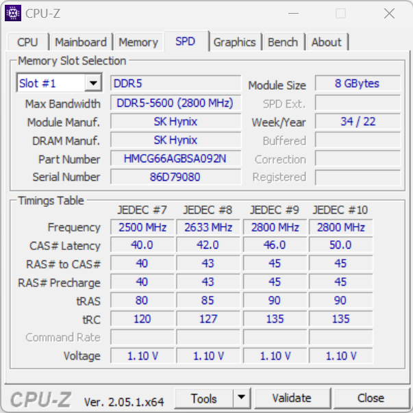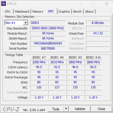 | Оперативная память | 16 ГБ DDR5-5600 в двух модулях по 8 ГБ (SK Hynix HMCG66AGBSA092N) | |