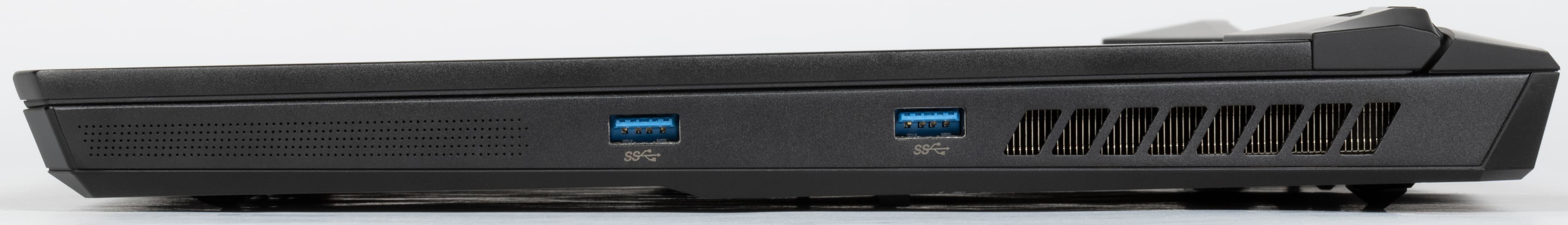 Справа на боковой поверхности имеются два порта USB3.2 Gen2 Type A и решетка выходного отверстия системы охлаждения.