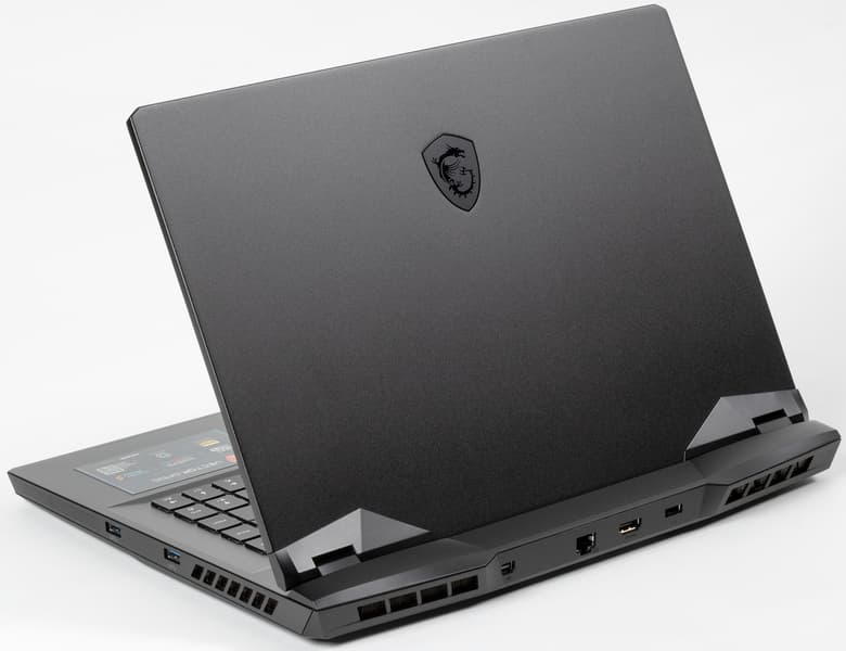 На крышке MSI Vector GP77 13V выделяется традиционный для производителя шильдик с драконом. Помимо этого в наружном убранстве обращают на себя внимание причудливые накладки на петли. Нам не ясно, несут ли они полезную функциональную нагрузку или просто скрывают элементы конструкции, но толщину корпуса в месте своего расположения увеличивают заметно и к тому же ограничивают угол откидывания крышки.