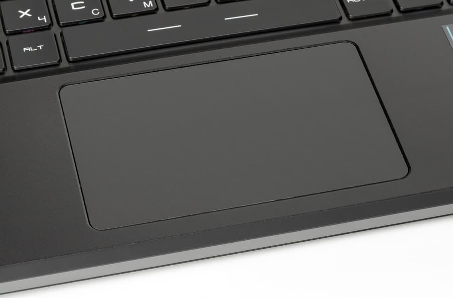 Навигационная панель у ноутбука не имеет выделенных кнопок, но нажатия сопровождаются отчетливыми щелчками и соответствующими откликами. Кликпад не очень большой, заметно смещен влево от условного центра, но удобный в пользовании. Уверенно отрабатываются нажатия лишь в ближайших к пользователю 2/3 площади.