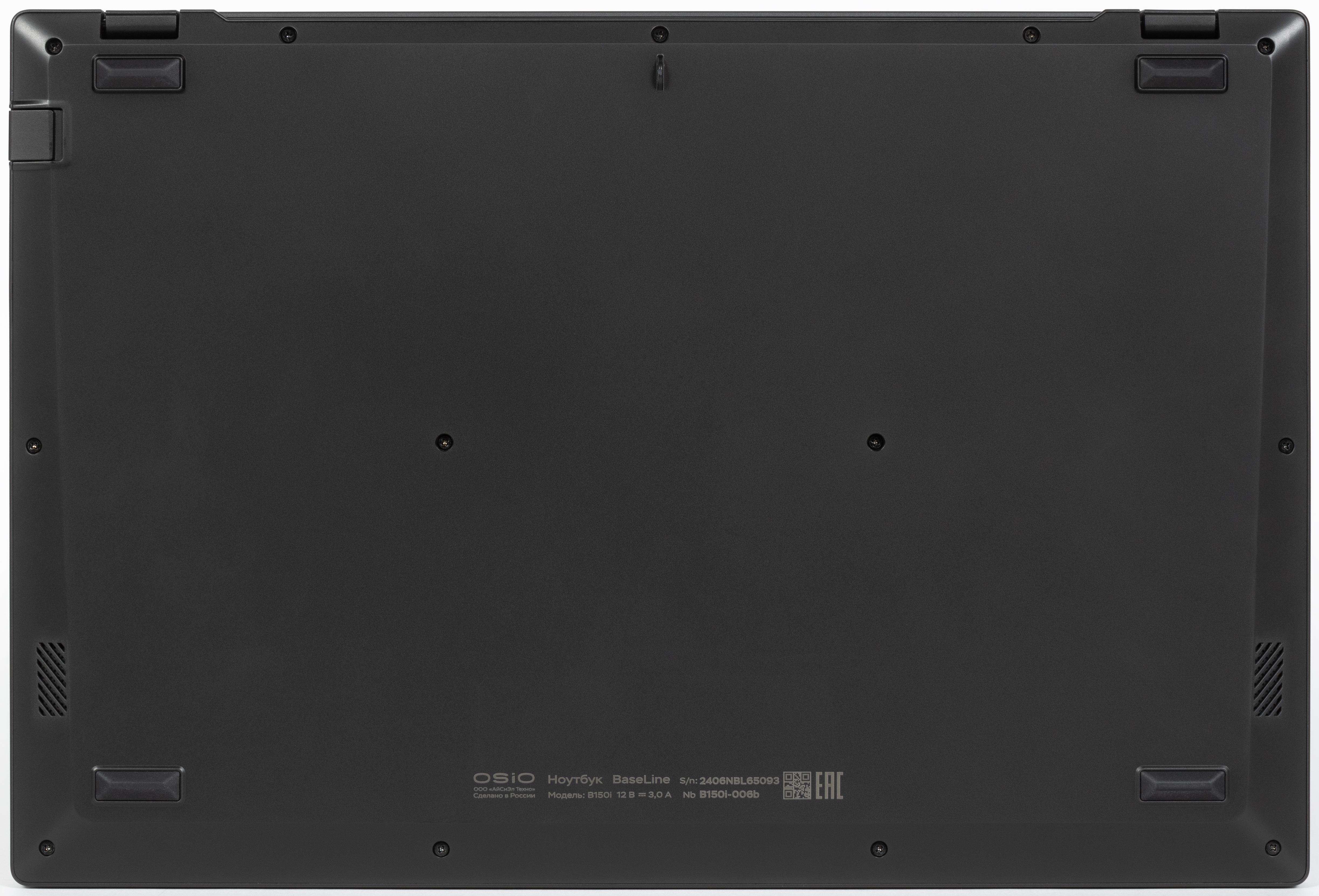 Один из самых свежих образцов такой продукции нам и достался — ноутбук OSiO BaseLine B150i-006b, дополнительный индекс «006» свидетельствует о некоторых особенностях конфигурации, есть также «004», «005», «007». Конечная буква «b» у ноутбуков OSiO обозначает цвет корпуса — черный, могут быть также «s» (серебристый), «с» (синий).