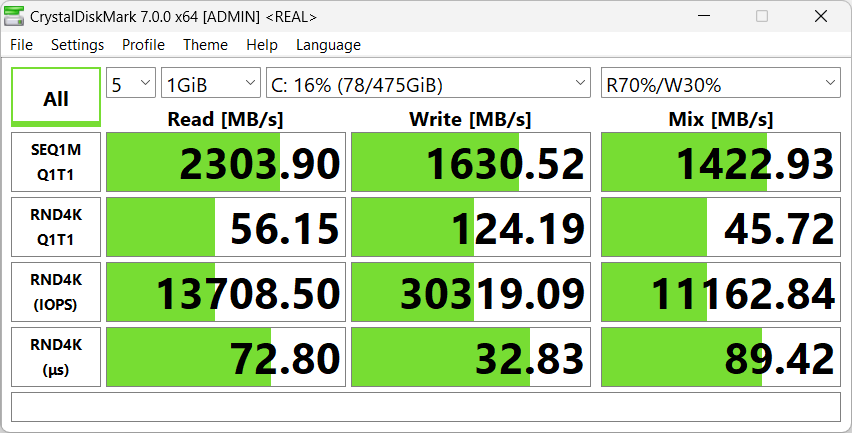 Предлагаем сравнить с результатами тестов еще двух SSD — Yangtze Memory PC300-1TB-B PCIe 4.0 ×4 (ноутбук Honor MagicBook Pro 16 DRA-54) и Western Digital PC SN540 512 ГБ PCIe 3.0 ×4 (Maibenben P625).