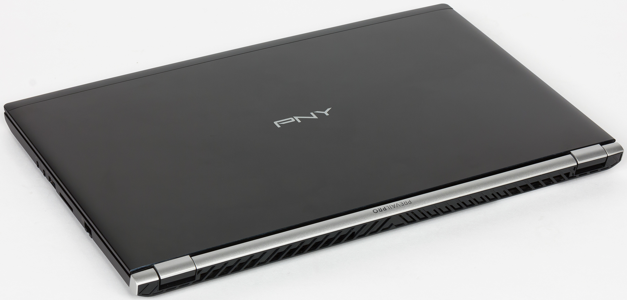 Поэтому у ноутбука PNY PrevailPro P4000 корпус классического черного цвета, однотонный. Единственный декоративный элемент — это выкрашенный в серебристый цвет задний торец ноутбука, к которому крепится экран.