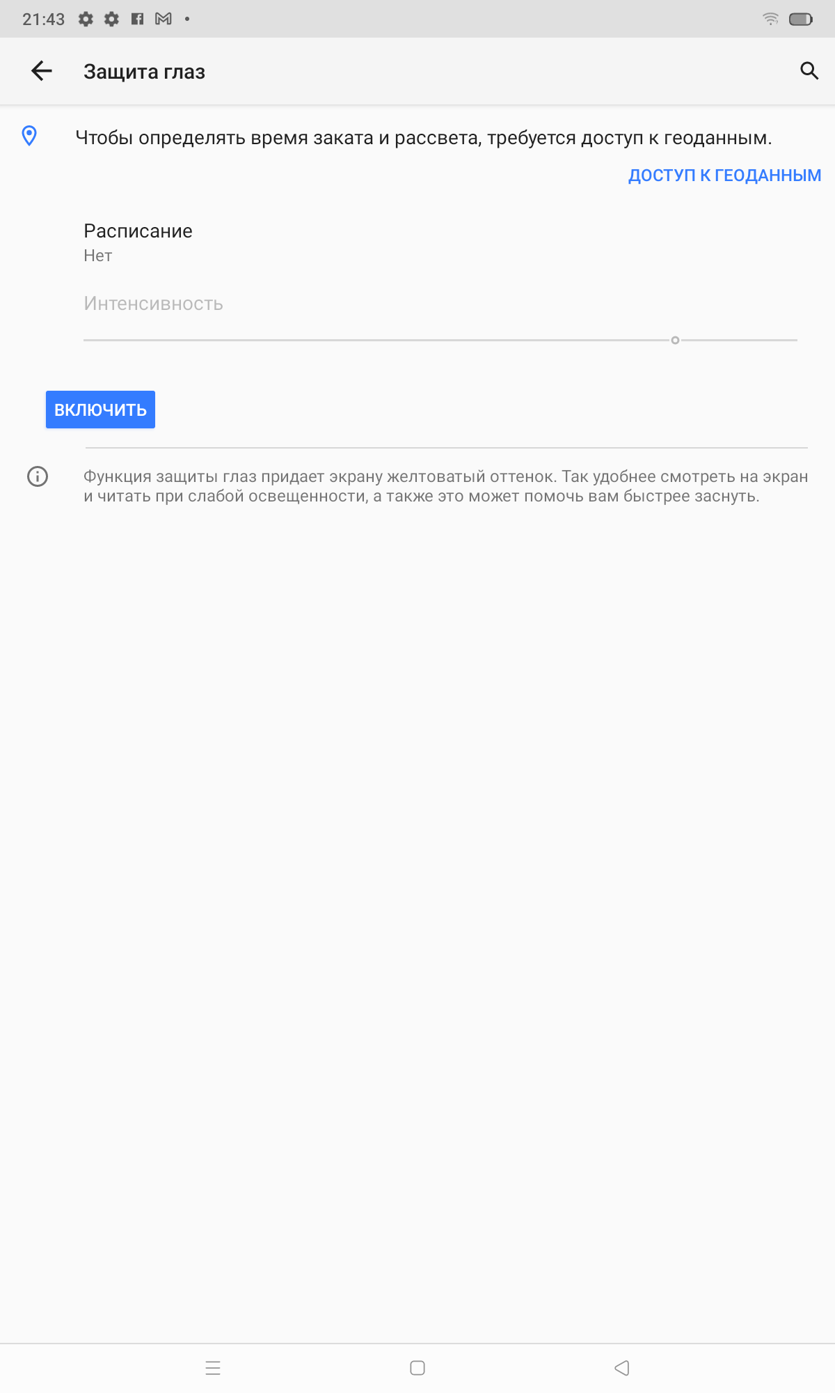 Также присутствует настройка (Защита глаз), позволяющая снизить интенсивность синей компоненты.