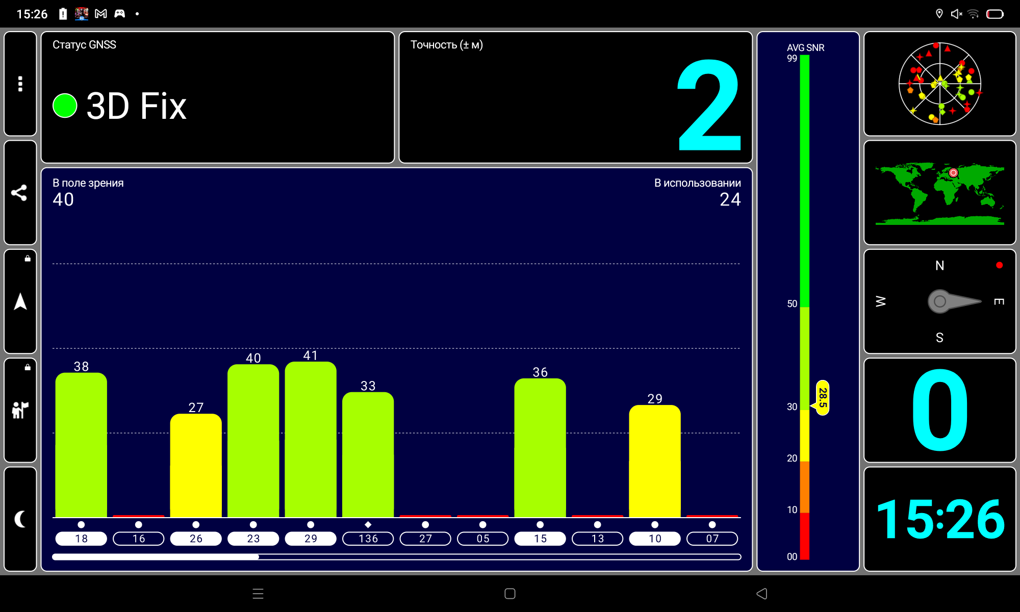В данном случае — да, действительно, GPS/Глонасс присутствуют, да и находятся спутники достаточно быстро — менее полуминуты при холодным старте требуется планшету, чтобы увидеть два десятка спутников и определить свое положение с точностью до 2 метров.