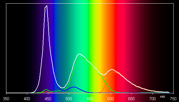 Спектры показывают, что светофильтры матрицы в умеренной степени подмешивают компоненты друг к другу: