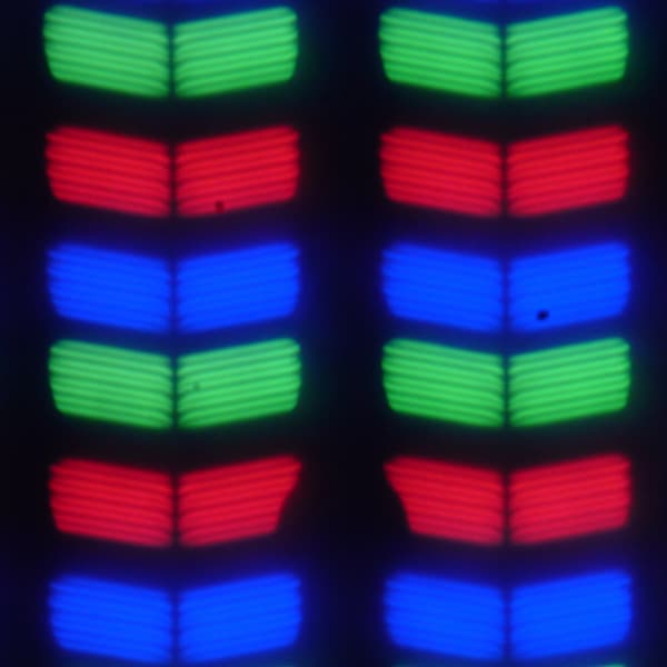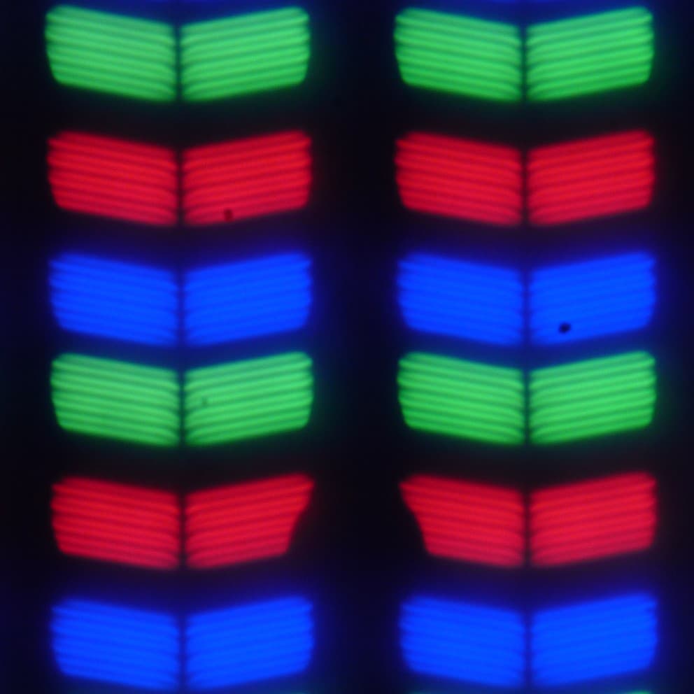 В данном устройстве используется матрица типа IPS. Микрофотографии демонстрируют типичную для IPS структуру субпикселей: