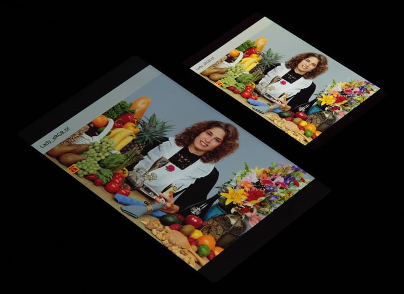 Видно, что цвета не сильно изменились у обоих экранов, но у Realme Pad контраст уменьшился в большей степени из-за сильного высветления черного и большего снижения яркости.