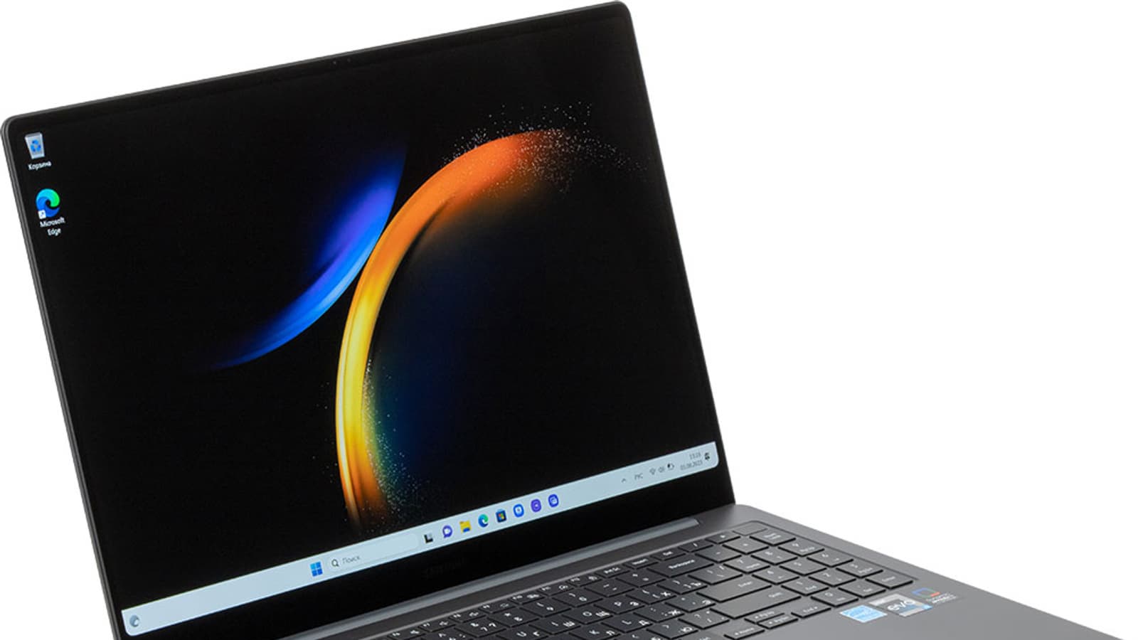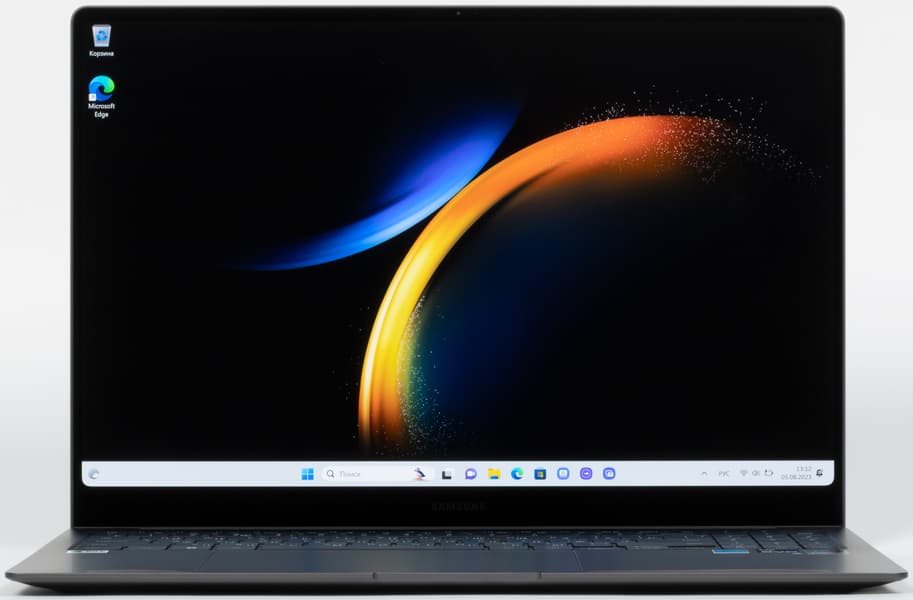 Тонкий (11 мм) и легкий (1,4 кг) ноутбук Samsung для бизнеса оснащен новейшим процессором Intel Core 13-го поколения со встроенным видеоускорителем, 32 ГБ оперативной памяти LPDDR5 с хорошими показателями быстродействия и довольно проворным терабайтным SSD-накопителем. Можно установить и второй NVMe-диск в свободный слот M.2 на системной плате. Главное достоинство новинки — отличный 16-дюймовый экран AMOLED сверхвысокого разрешения 3K (2880×1800) с соотношением сторон 16:10, отменной яркостью и широким цветовым охватом.