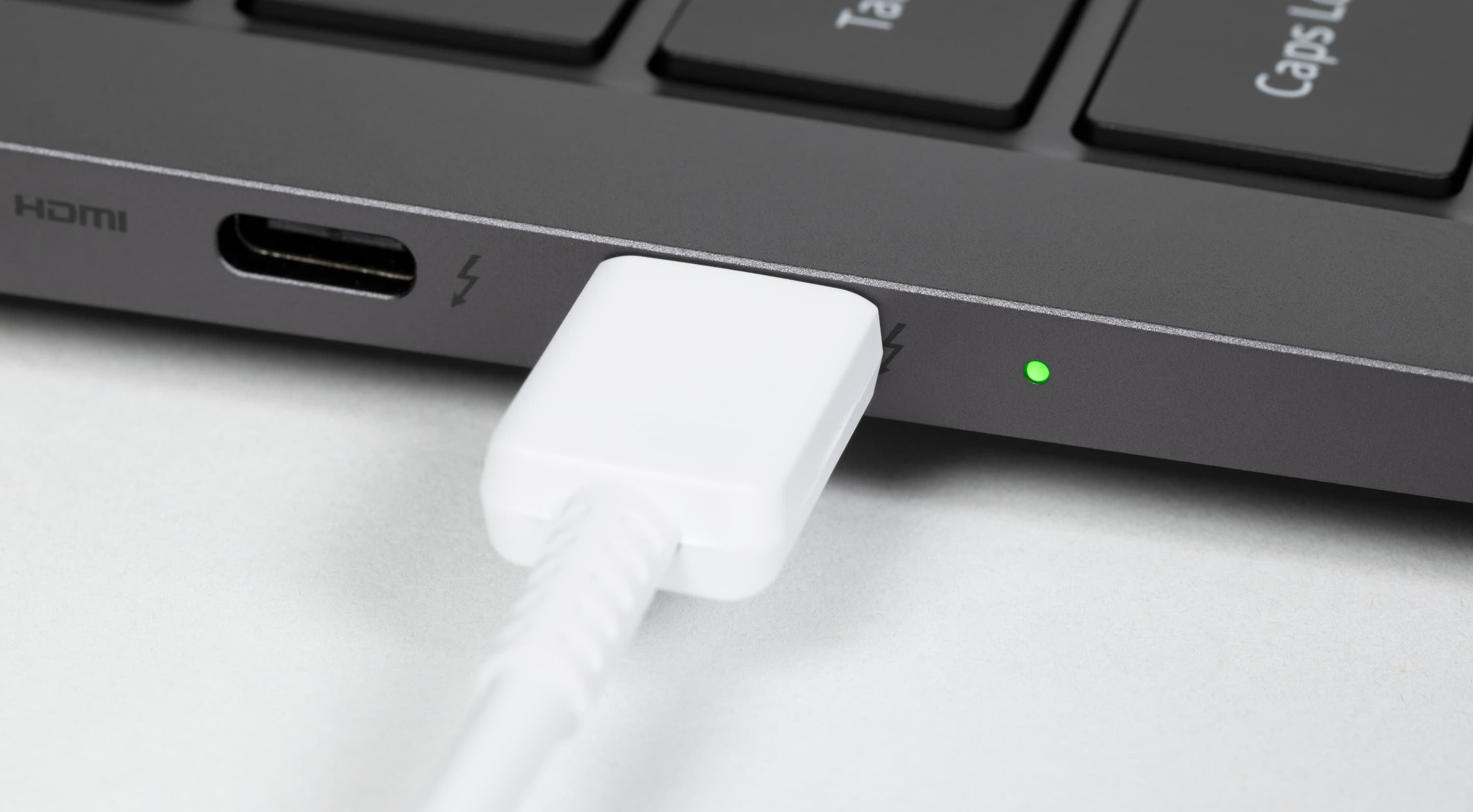 Слева помещаются стандартный видеовыход HDMI и два порта Thunderbolt 4. Оба обладают обратной совместимостью с USB 3, поддерживают вывод видео по DisplayPort и питание внешних устройств (PowerDelivery). Для зарядки машины можно использовать любой из этих двух разъемов. О подключении адаптера питания уведомляет светодиодный индикатор.