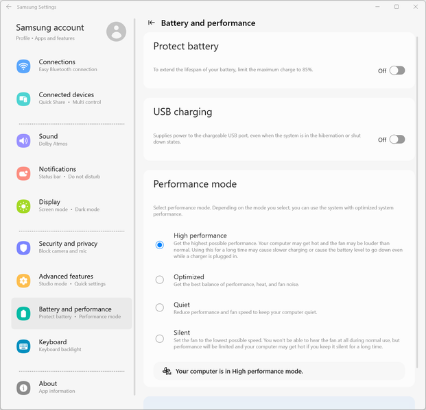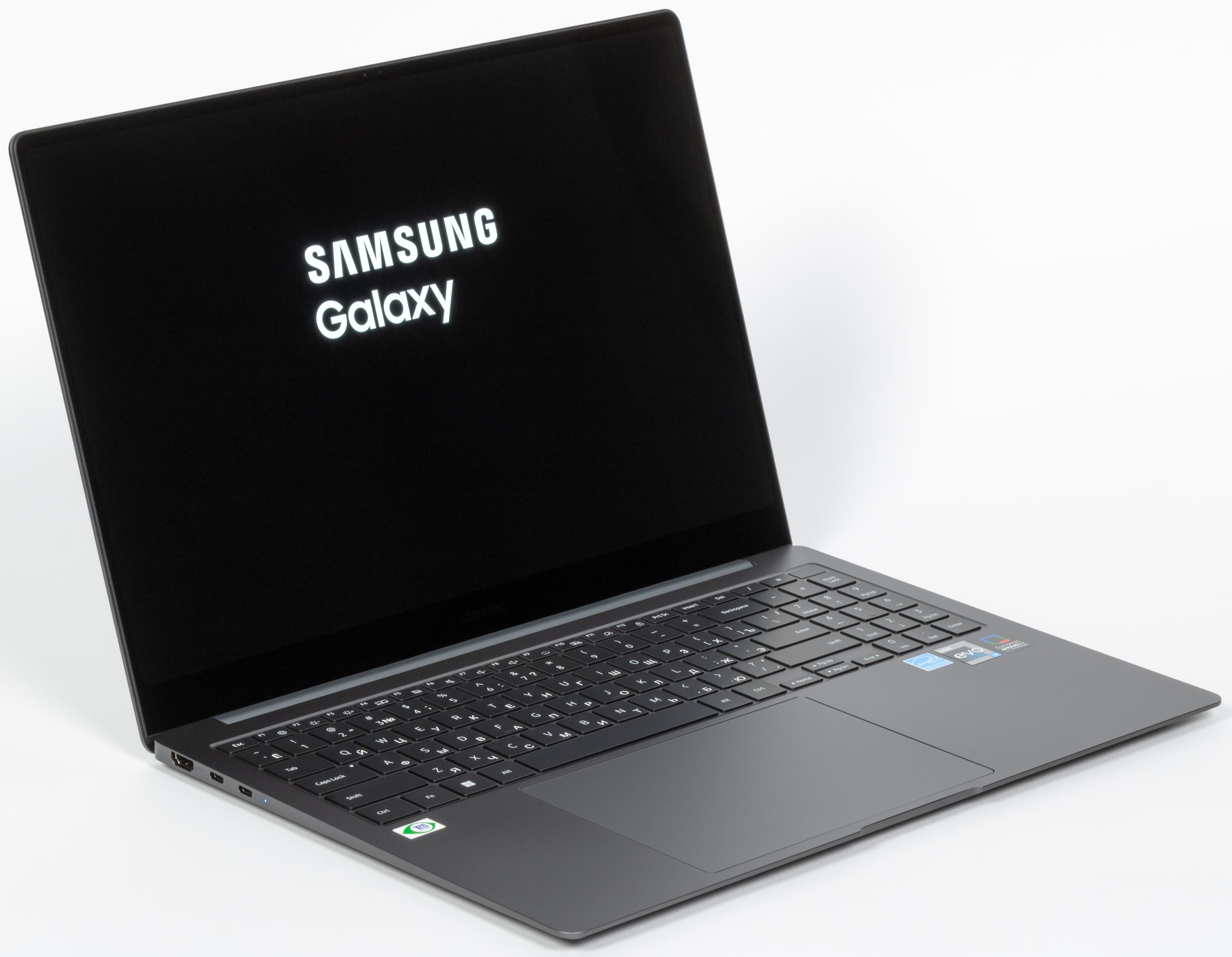 Деловым людям будут полезны дактилоскопический сканер, встроенный в кнопку включения питания, веб-камера 1080p, картовод microSD. Поддержана возможность простого и быстрого перемещения файлов между разными портативными устройствами Samsung, а также управления смартфонами и планшетами производителя с самого ноутбука. Воспроизведение мультимедиа обогатит поддержка Dolby Atmos с акустической системой из четырех динамиков. Среди особенностей оснастки отметим порт USB 3.2 Gen1 Type-A плюс два Thunderbolt 4 с поддержкой PowerDelivery и DisplayPort. Вкупе с HDMI это дает возможность подключить три внешних монитора. Беспроводной адаптер превосходит по скорости аналоги у некоторых конкурентов.