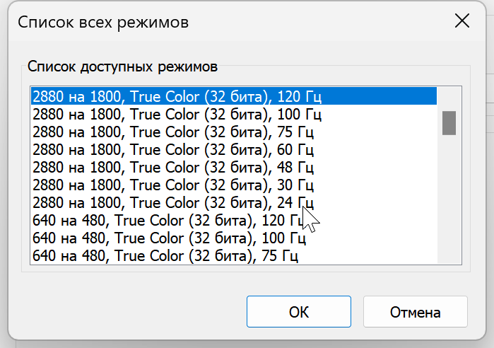В настройках экрана доступны несколько частот обновления: