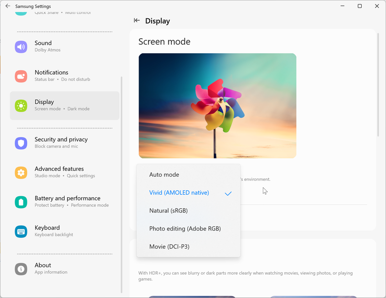 В этом ноутбуке используется 16,0-дюймовая OLED-матрица с разрешением 2880×1800 (отчет edid-decode). Для нее обещаны соответствие критериям VESA DisplayHDR 500 True Black и цветовой охват 120% пространства DCI-P3.