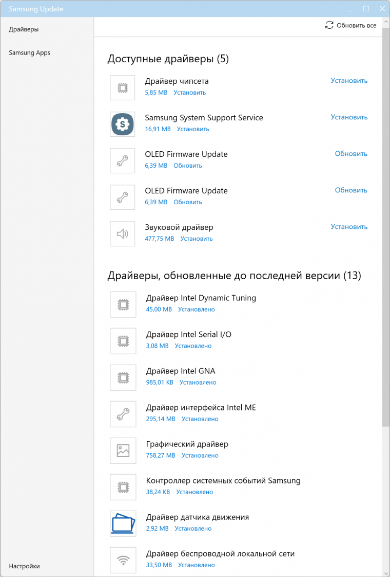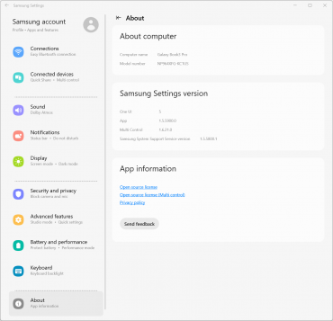 Ноутбук поставляется с ОС Windows 11 Home (домашней редакции), набором фирменных приложений, триал-версией MS Office и множеством проприетарных вспомогательных программ: Galaxy Book Experience, Galaxy Book Smart Switch, Samsung Bluetooth Sync, Samsung Flow, Samsung Notes, Samsung Recovery, Samsung Settings, Samsung Update. От этого изобилия просто рябит в глазах.