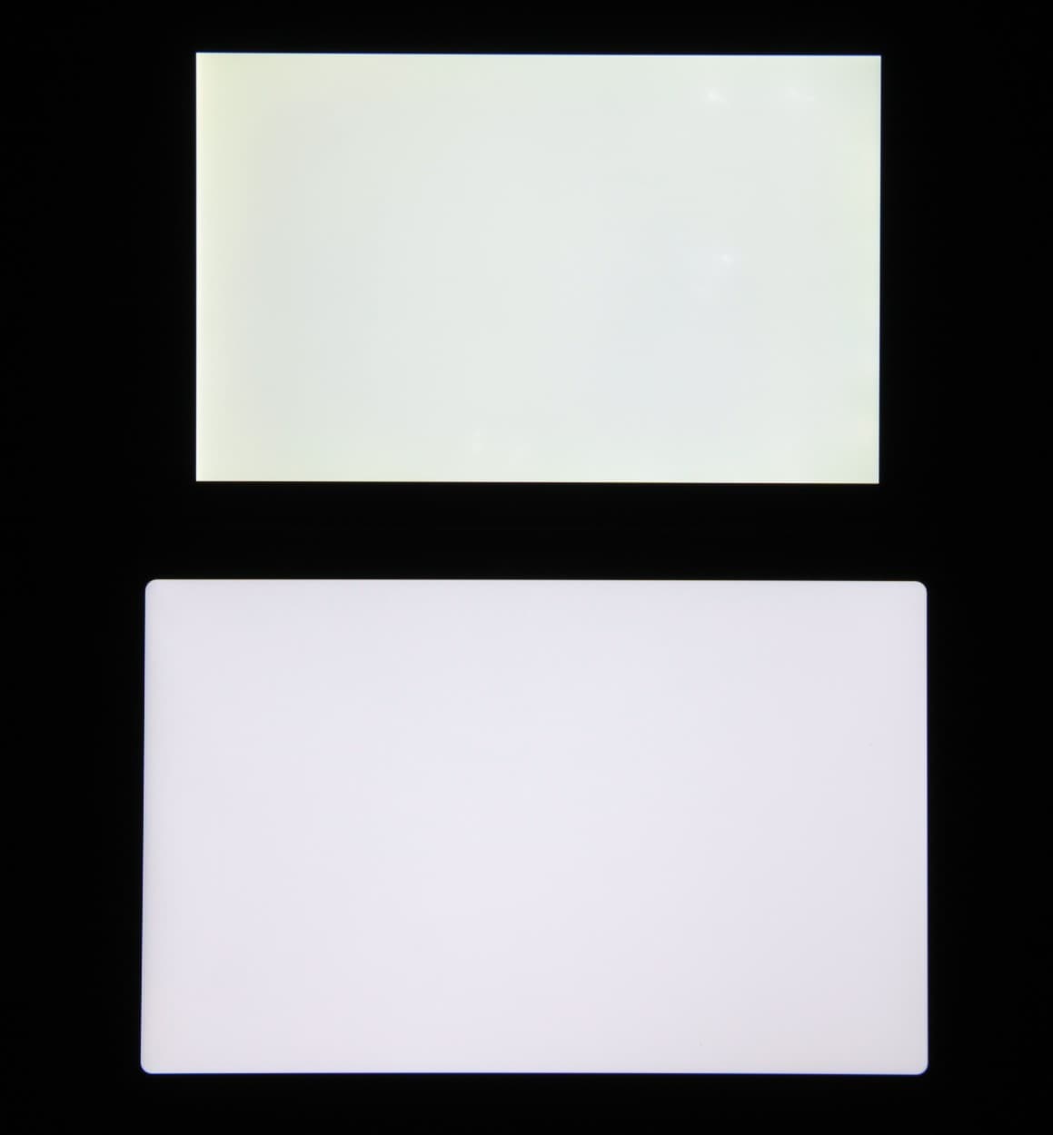 Для сравнения приведем фотографии, на которых на экран тестируемого планшета (он ниже) и на экран второго участника сравнения (Nexus 7, он выше) выведены одинаковые изображения, при этом яркость экранов изначально установлена примерно на 200 кд/м², а цветовой баланс на фотоаппарате принудительно переключен на 6500 К.