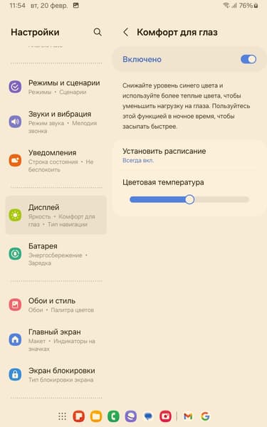 Есть настройка, позволяющая снизить интенсивность синей компоненты.