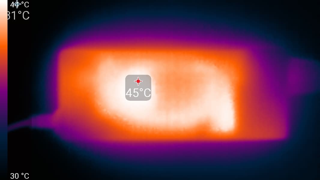 Ниже приведены термоснимки, полученные после долговременной работы ноутбука под максимальной нагрузкой на CPU: