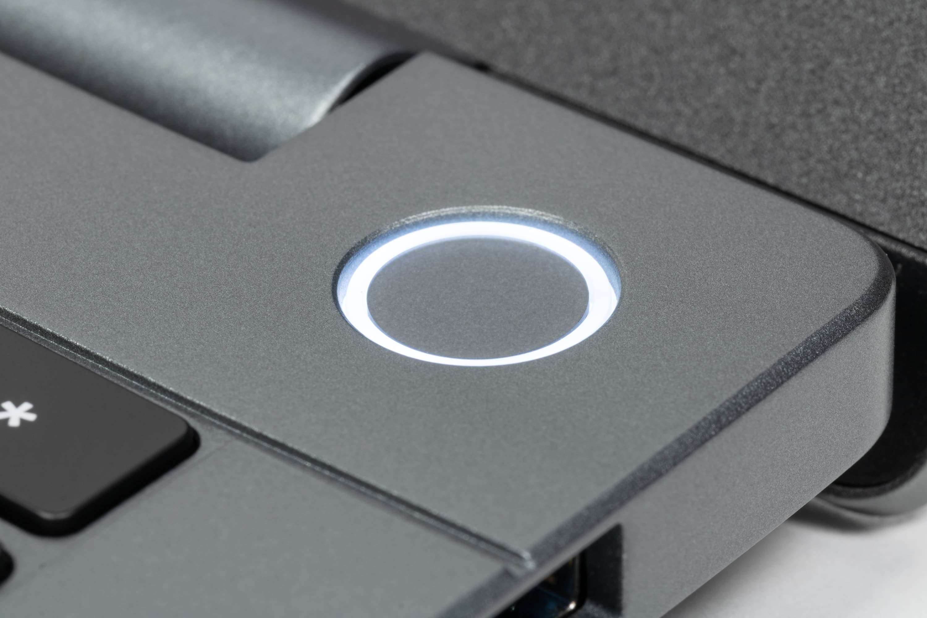 Кнопка выключателя питания расположена над верхним рядом алфавитно-цифровых клавиш. Она имеет форму правильного круга, оснащена собственным индикатором в виде кольца и утоплена ниже плоскости панели, поэтому случайные нажатия исключаются.