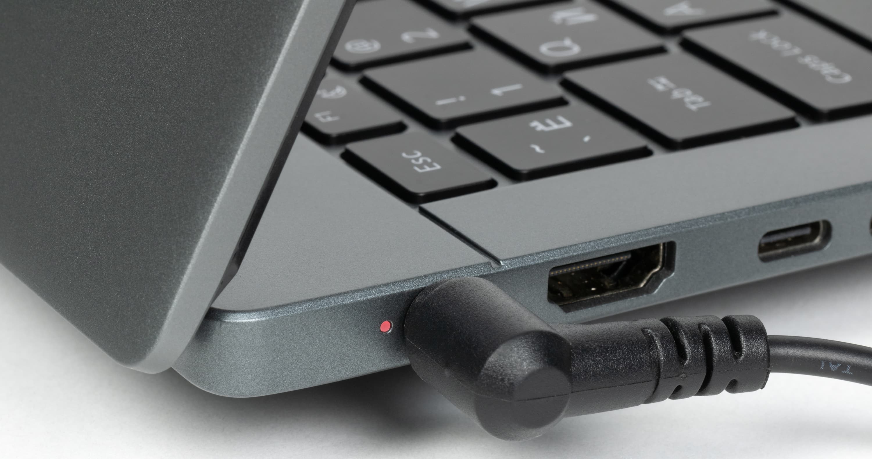 Максимальный угол раскрытия немного превышает 180°. В закрытом состоянии крышка удерживается за счет петель и доводчика. Усилие, необходимое для ее раскрытия, подобрано правильно: ноутбук можно раскрыть одной рукой, и основание при этом не приподнимается на столе и не сдвигается.