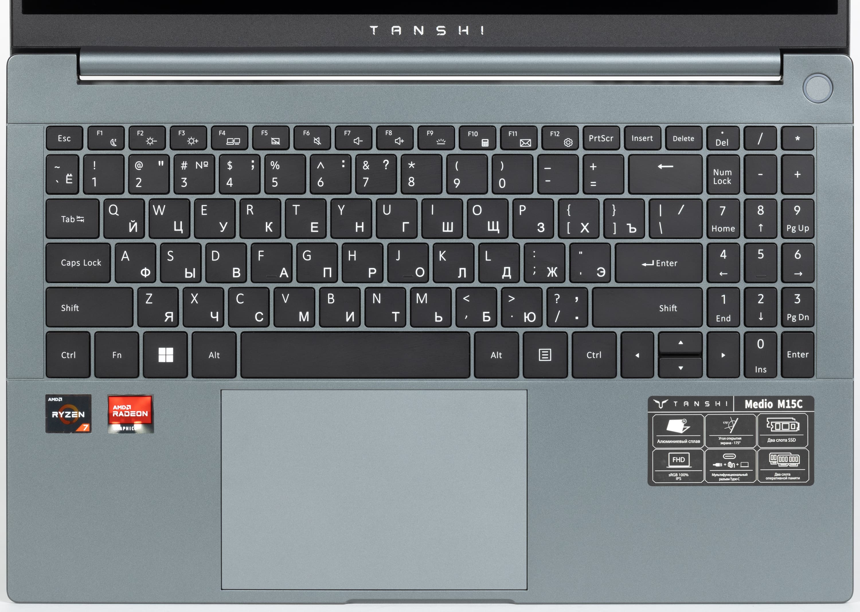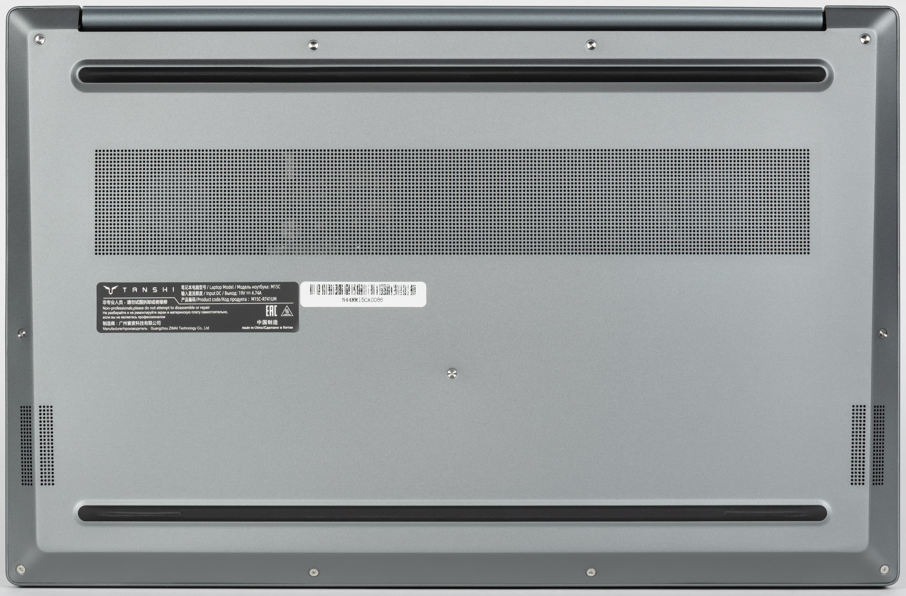 Tanshi M15C заключен в серебристо-серый металлический корпус. Дизайн минималистичный.