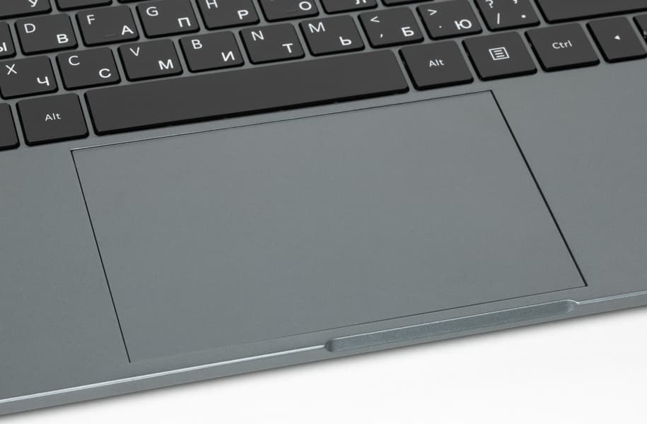Тачпад заметно смещен влево от середины лицевой панели. Он не имеет выделенных кнопок, но нажатия на поверхность сопровождаются отчетливыми щелчками и соответствующими откликами. Кликпад не очень большой, но удобный. Правда, безошибочно отрабатываются нажатия лишь в ближайших к пользователю ⅔ площади его поверхности.