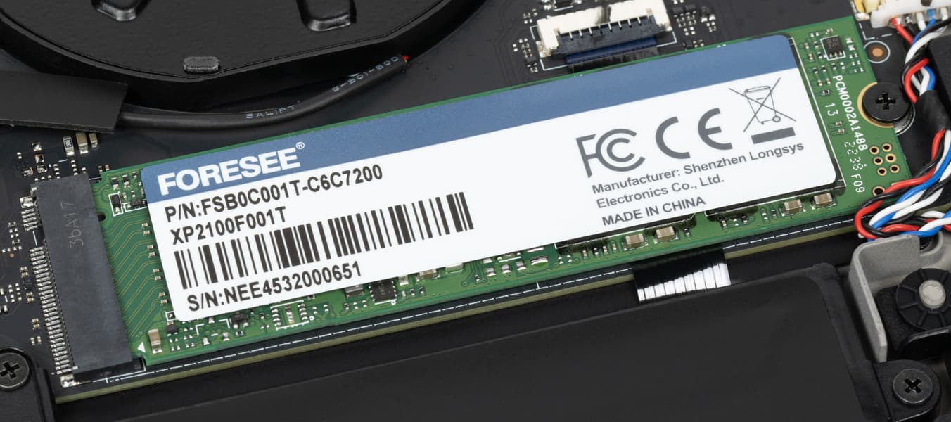 Ноутбук комплектуется твердотельным накопителем Foresee FSB0C001T емкостью 1 ТБ производства китайской компании Shenzhen Longsys Electronics, установленным в единственный доступный слот M.2 (интерфейс PCIe 4.0 ×4). Проведем испытания этого SSD-хранилища при помощи популярной утилиты CrystalDiskMark.