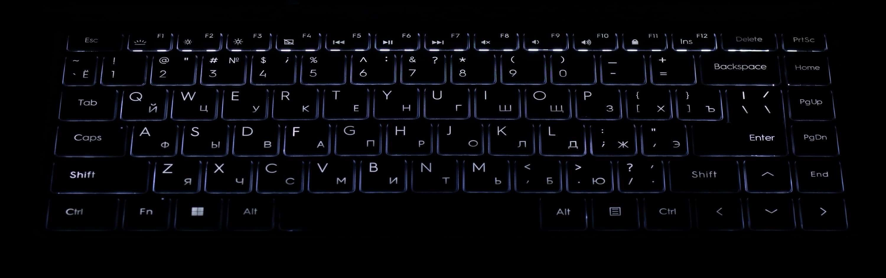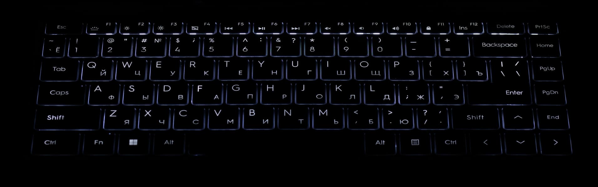 Клавиатура снабжена подсветкой с четырьмя уровнями яркости (пятое состояние — подсветка выключена). Переключение между уровнями производится повторным нажатием аккорда Fn+F1. Все символы, а равно и торцы кнопок, подсвечиваются одинаково.
