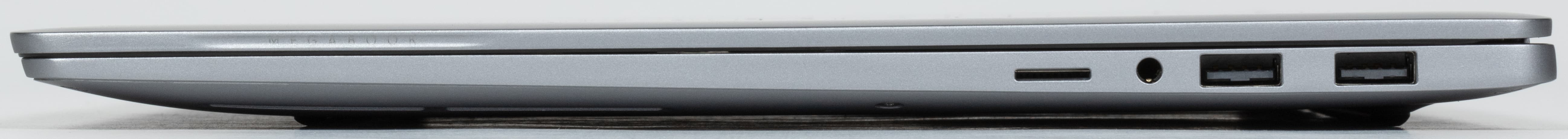 На правой боковой панели имеются слот картовода microSD, комбинированный разъем для подключения аудиогарнитуры и два равноценных порта USB 3.1 Type-A.