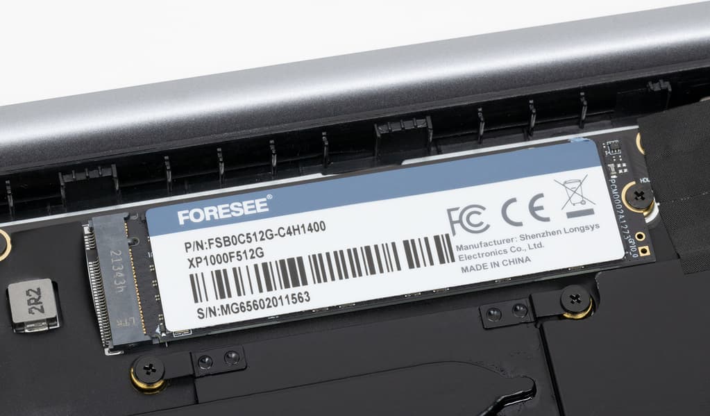 Твердотельный накопитель Foresee XP1000F512G располагается в первом слоте M.2. Его неформатированная емкость составляет 512 ГБ.