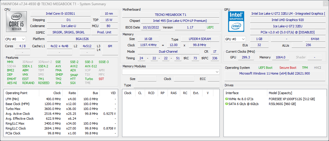 - Infinix Inbook X2 XL21 с интегрированной Intel Iris Plus Graphics 940 (Ice Lake GT2 64EU);