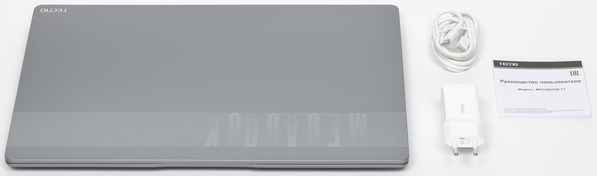 Кроме самого ноутбука в комплект поставки включены адаптер питания от бытовой сети переменного тока, зарядный кабель с разъемами USB-С на обоих концах и очень скромная по объему инструкция для пользователя.