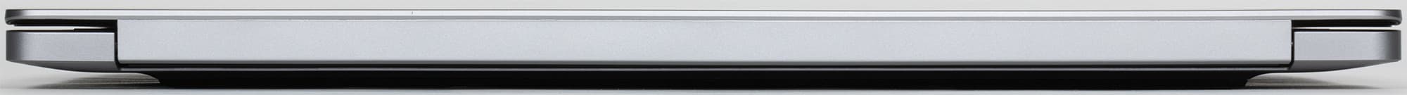 Петли скрыты элементами корпуса. Максимальный угол откидывания крышки составляет 180°. В закрытом состоянии она удерживается магнитами в передней, ближайшей к пользователю части. Усилие, необходимое для раскрытия машины, подобрано правильно: ноутбук легко раскрывается одной рукой, но при этом не подпрыгивает на столе и не сдвигается. Закрыть машину тоже удается одной рукой, не прибегая к помощи второй.