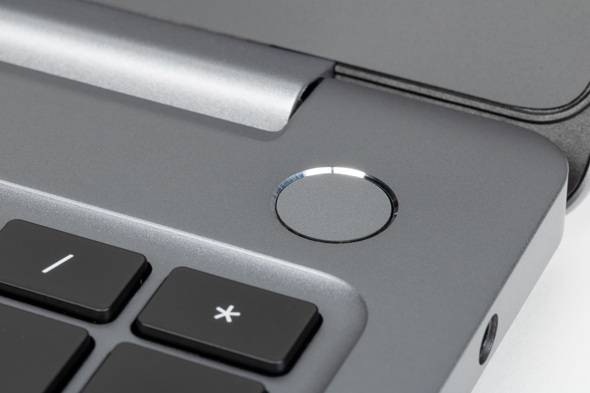 Клавиша выключения питания вынесена за пределы клавиатурного поля. Она того же металлического вида, что и лицевая панель машины, имеет форму правильного круга, а не прямоугольника и утоплена ниже плоскости панели, поэтому случайные нажатия исключаются. Поверхность кнопки представляет собой дактилосканер, благодаря которому идентификация пользователя происходит автоматически одновременно с «холодным стартом» системы, то есть при включении питания.