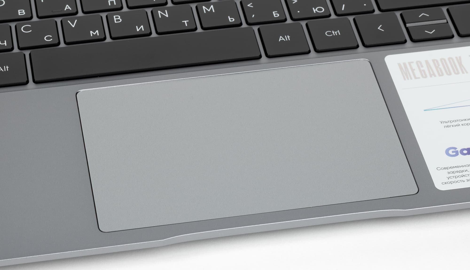 Тачпад размещен посередине лицевой панели. Он не имеет выделенных кнопок, но нажатия на поверхность сопровождаются отчетливыми щелчками и соответствующими откликами. Кликпад не очень большой, но удобный. Правда, уверенно отрабатываются нажатия лишь в ближайшей к пользователю половине площади кликпада.
