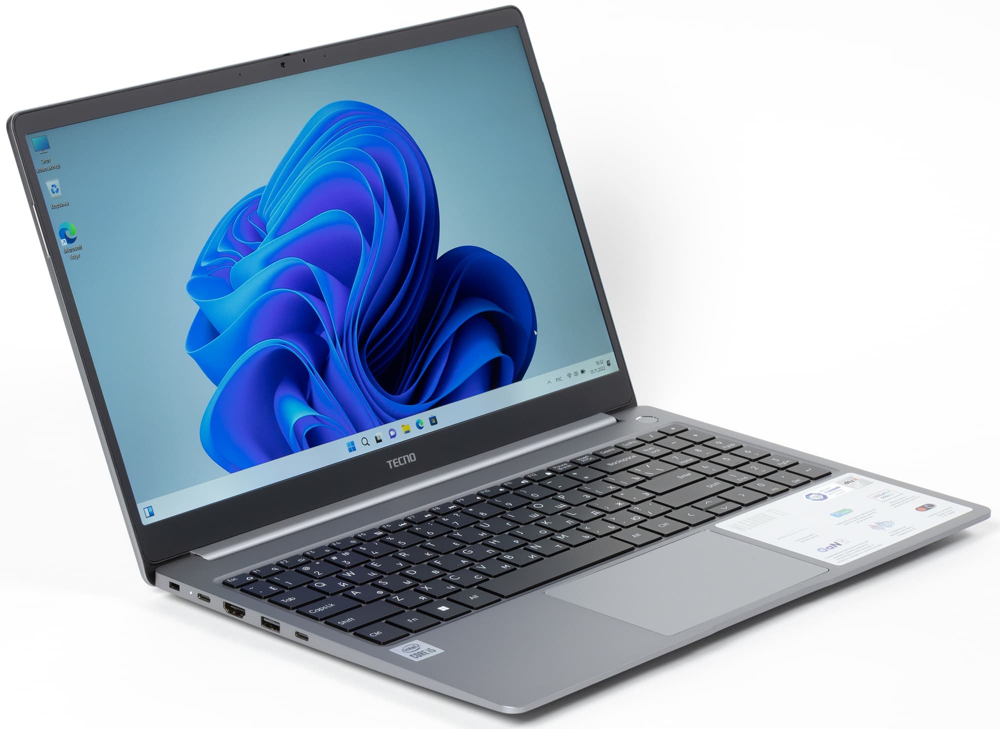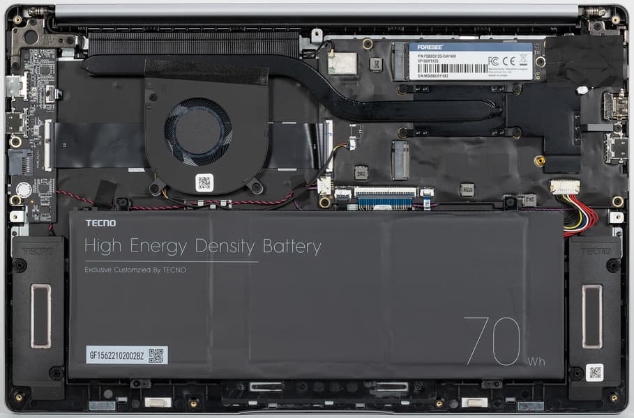Первый опыт компании Tecno Mobile в создании ноутбука делового назначения следует признать по большей части удачным: устройство изящное, сравнительно компактное, заключено в металлический корпус небольшой толщины и умеренного веса, но высокой прочности; удачно подобраны экран большого размера с хорошим цветовым охватом и полноразмерная клавиатура, сохраняющая все клавиши цифрового блока и почти все — навигационной зоны. Всё это способствует комфортной работе. Сканер отпечатков пальцев, совмещенный с кнопкой включения питания, дает возможность авторизовать пользователя без дополнительного ввода пароля в момент запуска системы, ускоряет холодный старт и экономит время. Аккумулятор высокой емкости обеспечивает рекордную длительность автономной работы, на уровне самых лучших в этом плане ноутбуков (исключая модели на ARM-архитектуре) — более 15 часов при наборе текста. Поэтому можно забыть о зарядке минимум на целый рабочий день, а то и на два. Хороший набор портов позволяет подключать к ноутбуку разнообразную периферию, включая два внешних монитора одновременно, и пользоваться карточками microSD, для работы с которыми есть картовод.