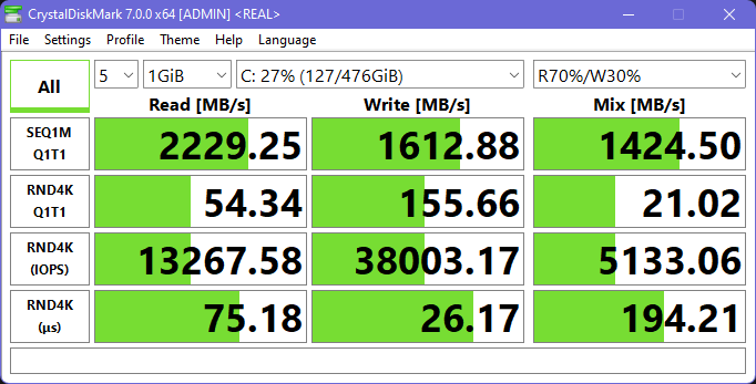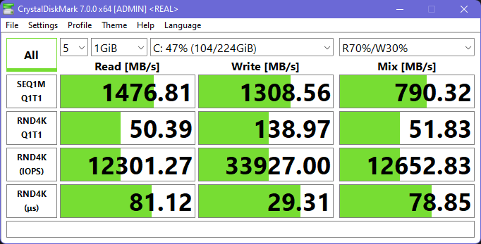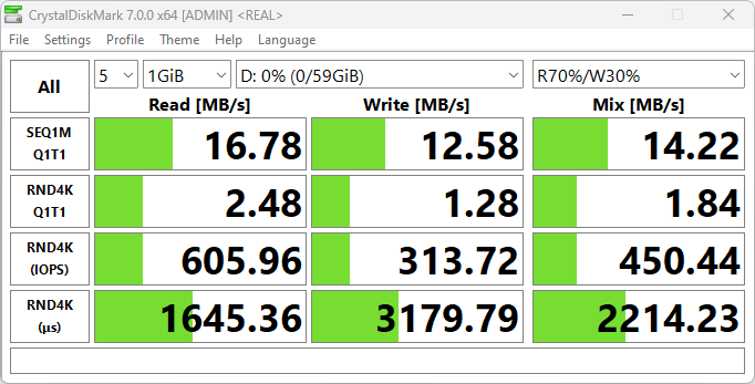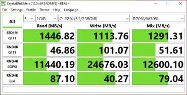 Разумеется, полученные скорости несопоставимы с тем, что выдает системный SSD, но, как говорится, спасибо и на этом.