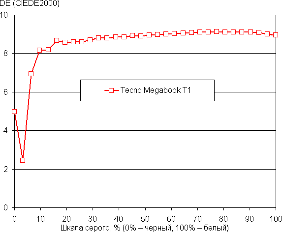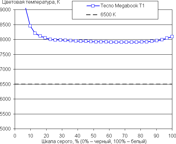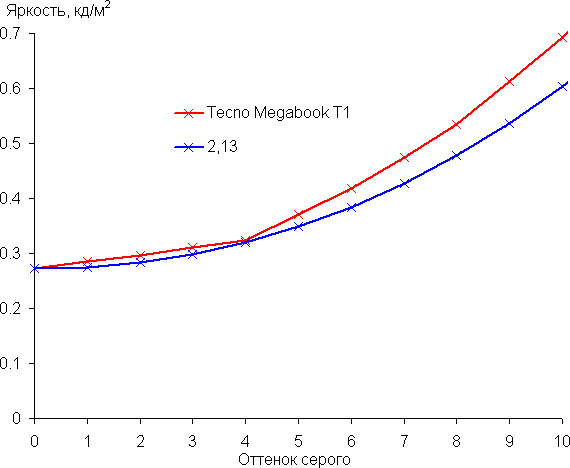 Вернемся к экрану тестируемого ноутбука. Если настройка яркости равна 0%, то яркость снижается до 22 кд/м². Таким образом, в полной темноте яркость экрана получится понизить до комфортного уровня.