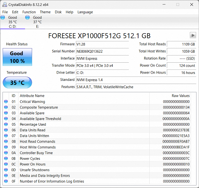 Предлагаем сравнить с результатами тестов еще двух SSD PCIe 3.0 x4 — Foresee GSYAPGC-512G (512 ГБ, ноутбук Infinix Inbook X2 XL21) и KingSpec NX-512 (512 ГБ, Irbis SmartBook 15NBP3508):
